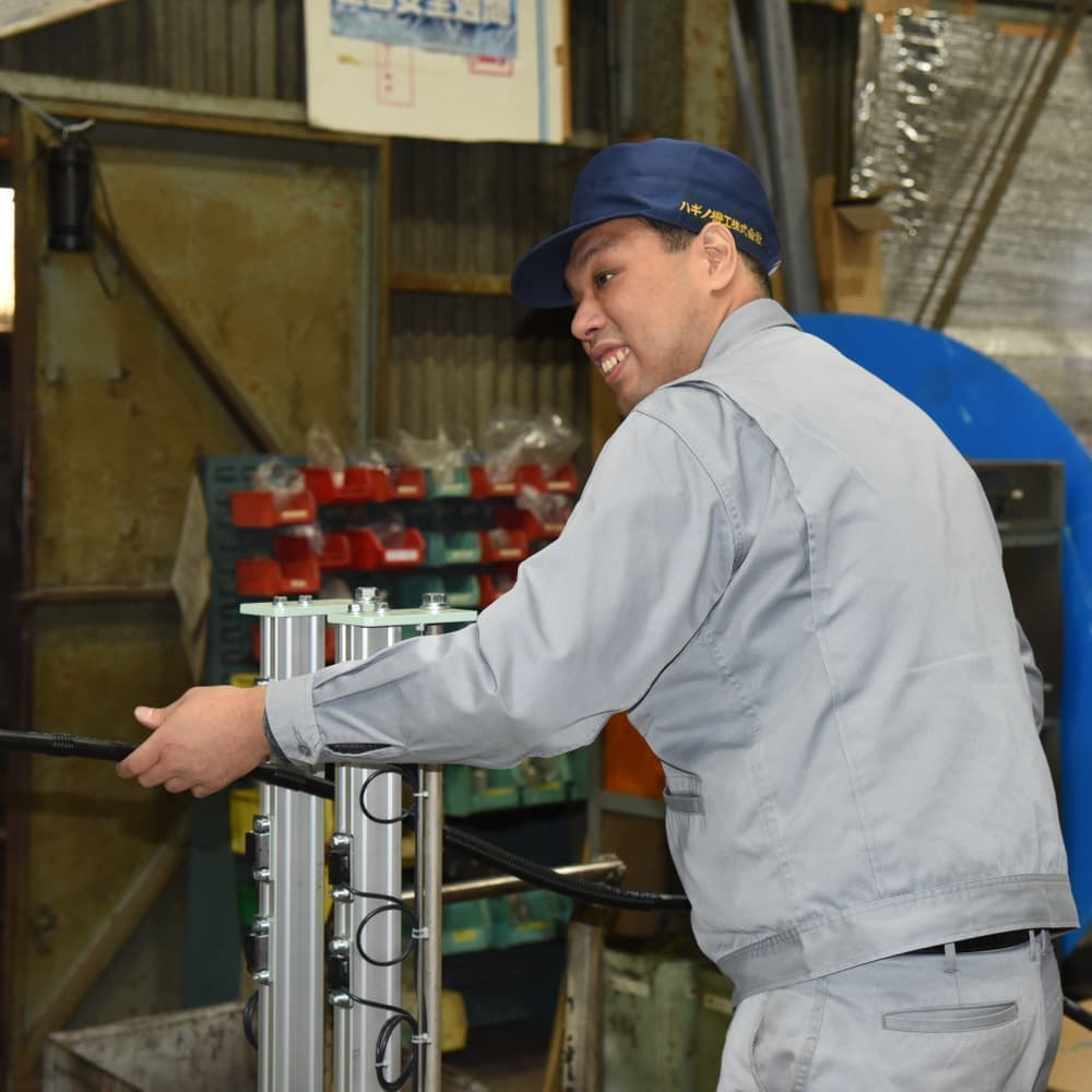 ハギノ機工が手掛けるのは、ゴム・プラスチック押出成形ラインにおける下流装置と呼ばれる冷却から搬送までの一連の産業機械です。顧客ニーズは年々、複雑多岐・多彩にわたり生産ラインでの自動化・省力化に関しては高度な要求があります。