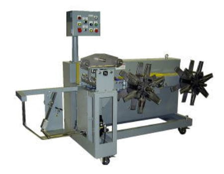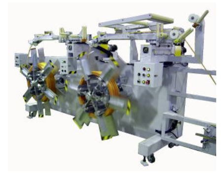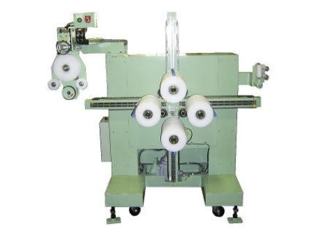 巻取終了時にライン速度に合わせ、4個の5連ローラーが、上下左右に開き、チューブをアキュームします。